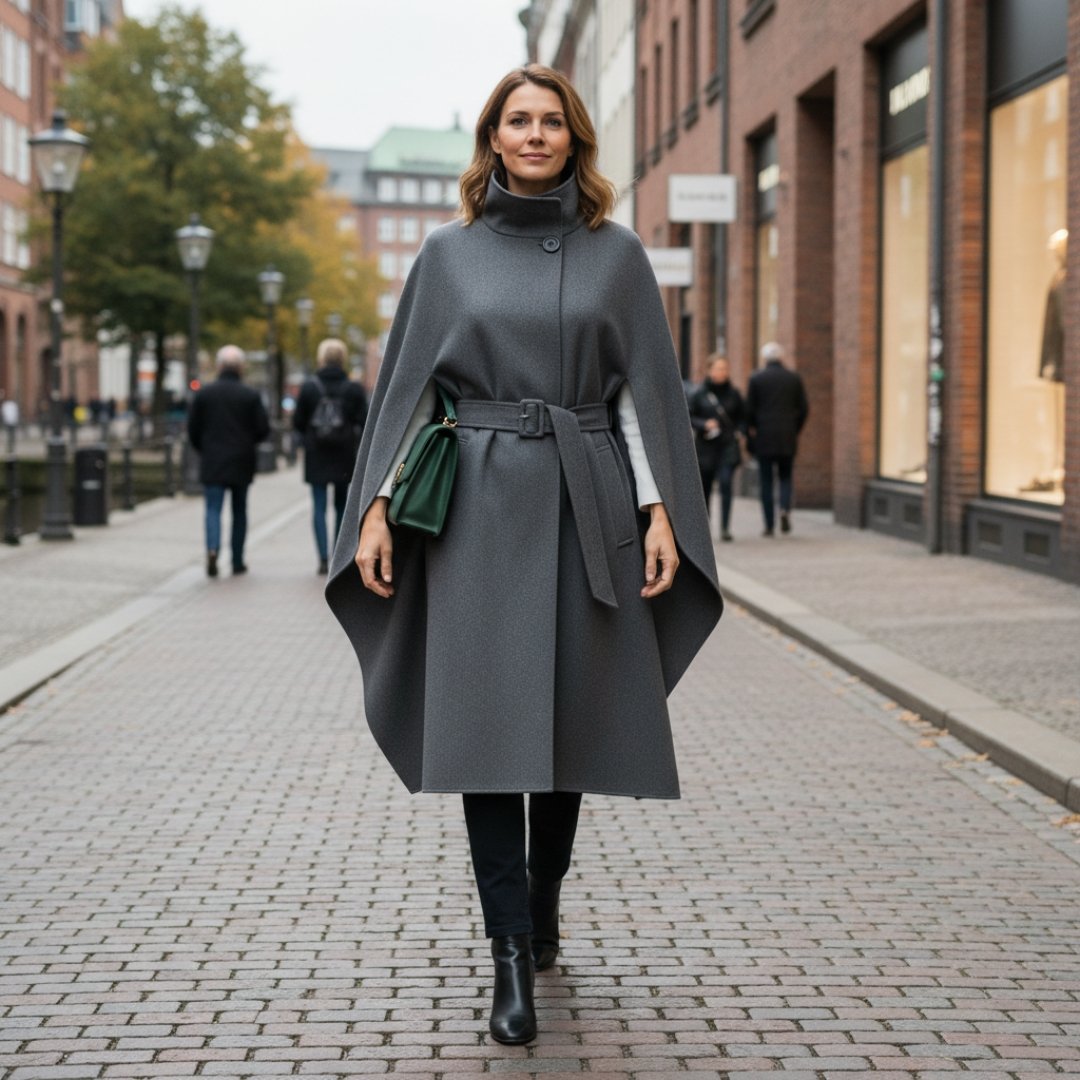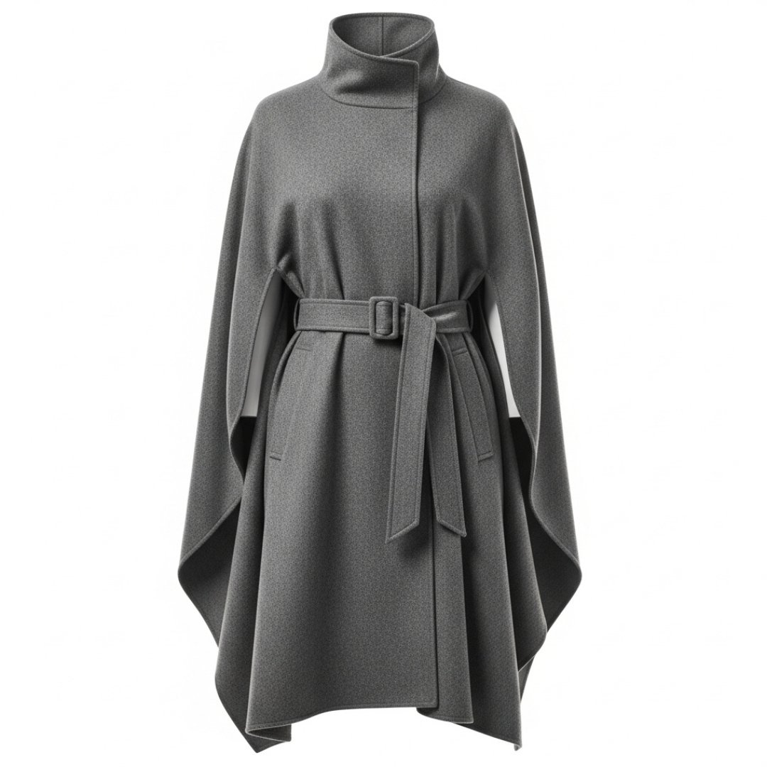 Home Trenchcoat Modella Berlin Damen Cape mit Gürtel – Eleganter Woll-Poncho im Gina Stil
